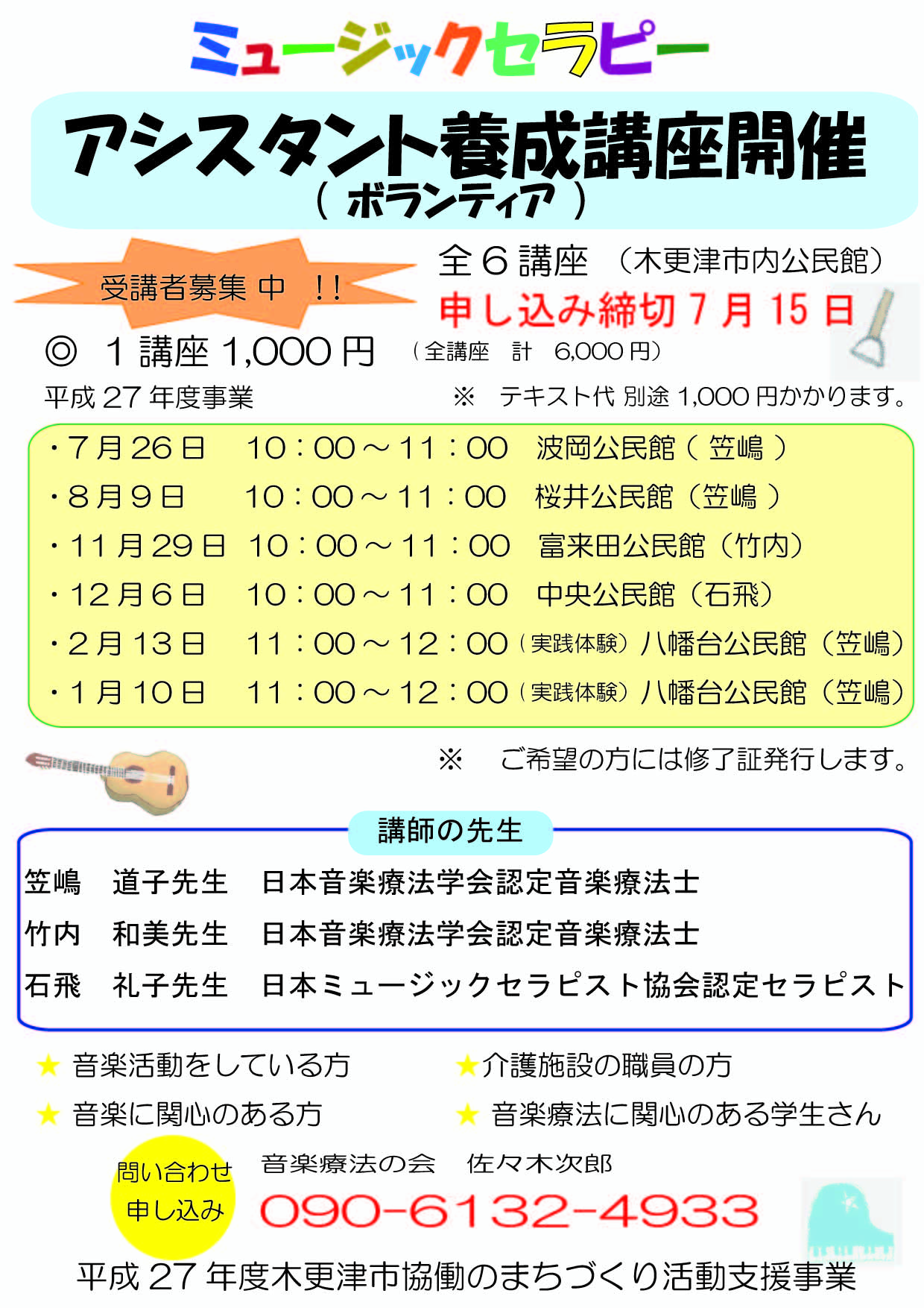 また 音楽療法技法の講義もあります(2000円)