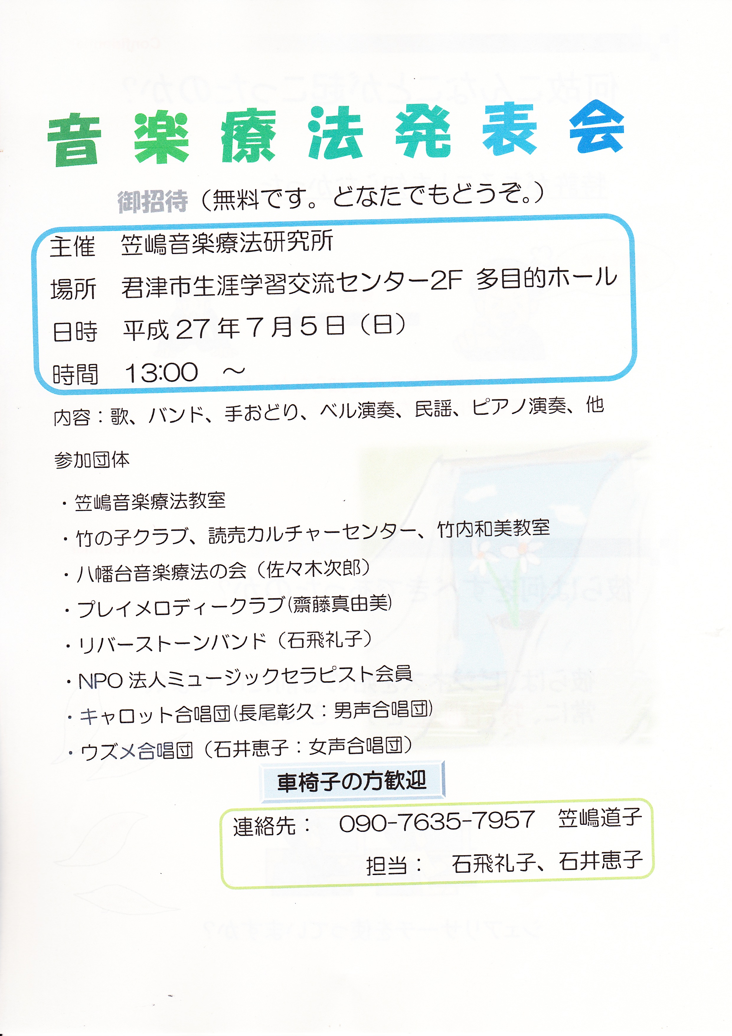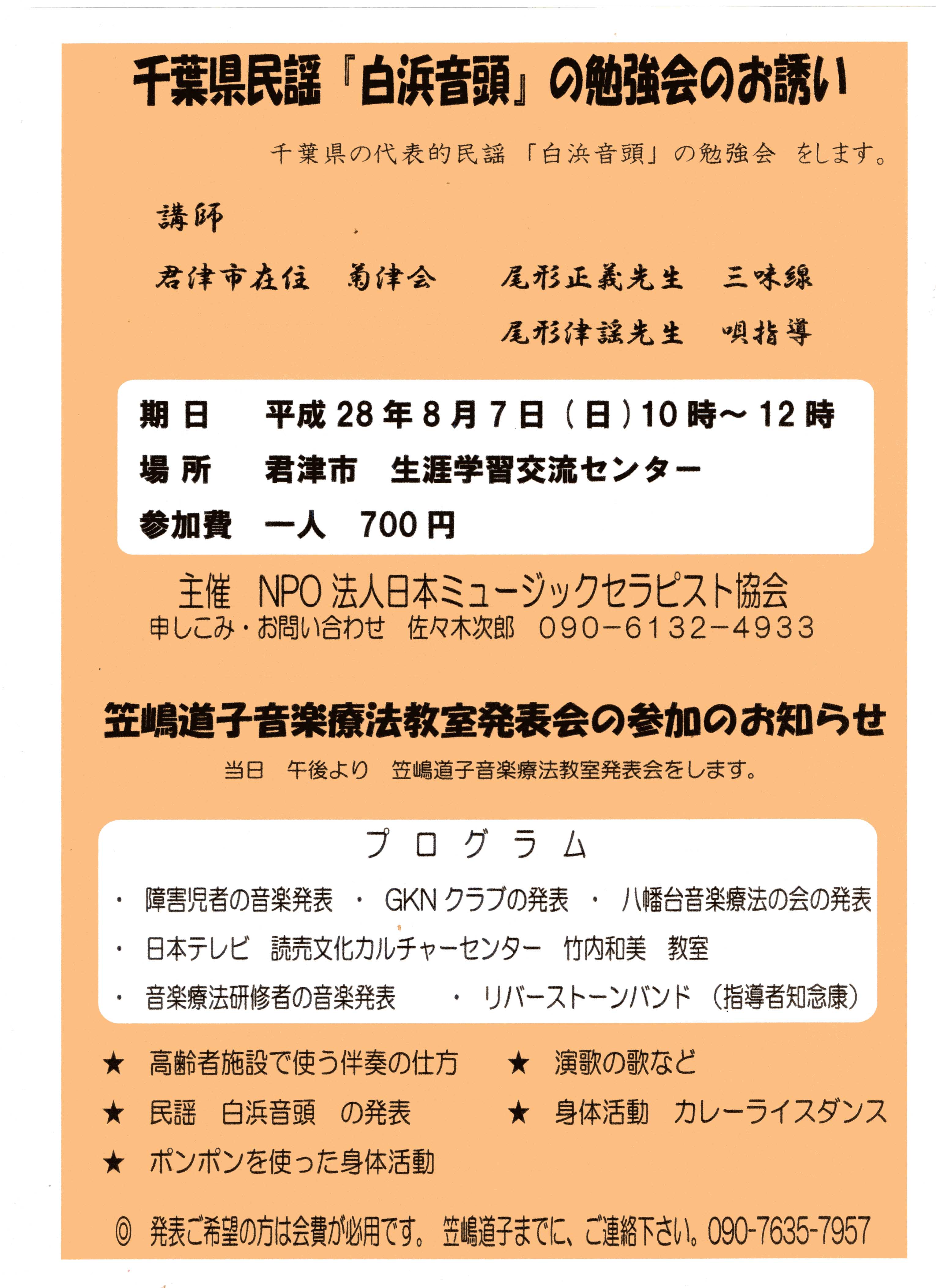 7月13日 日曜日 民謡 尾形津謡 笠嶋音楽療法研究所音楽発表会